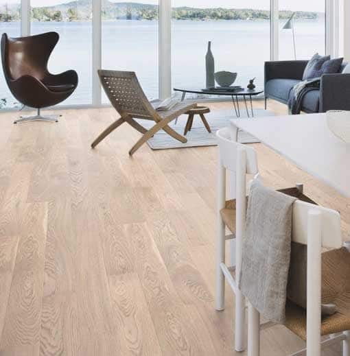 Boen Animoso Oak White Plank Live Natural Oil Brushed 138mm are made with a Boen X-Press click system, enabling easier and faster installation. Each plank has bevels on the long sides and are brushed to raise the grain. The oak engineered flooring comes in fixed lengths which are 2200mm long, 138mm wide, has a 3.5mm wear layer and a total thickness of 14mm. Please allow two – three weeks for delivery