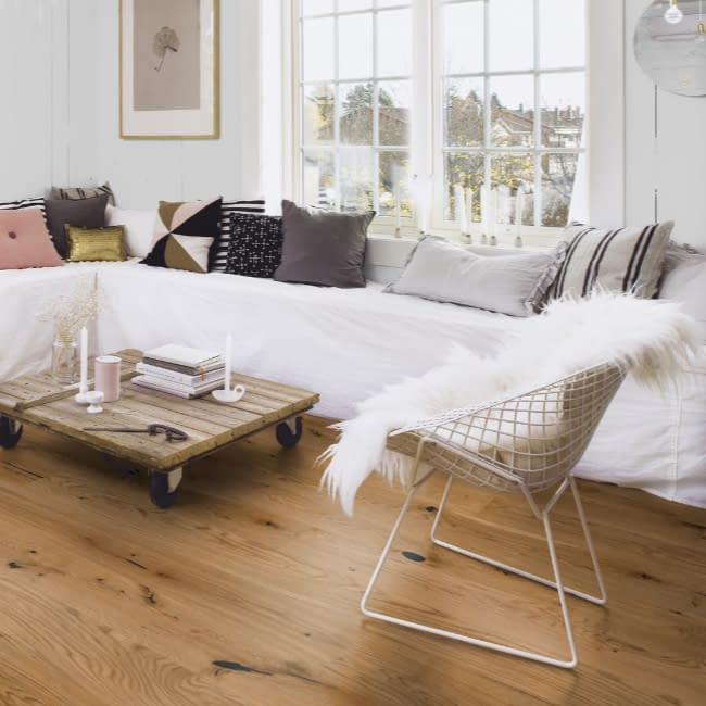 Boen Castle Espressivo Oak Brushed Live Natural Oil 209mm has a 2 bevel on the long sides. Are made with a Boen X-Press click system, enabling easier and faster installation. The oak engineered flooring comes in fixed lengths which are 2200mm long, 209mm wide, has a 3.5mm wear layer and a total thickness of 14mm. Each pack will contain 2 boards that are half lengths, minimum length 600mm. Very rustic grade. Cavities, cracks and marks are part of the product and form it’s specific character. The flooring can contain large knots, cracks and filled defects, which have been worked out by hand. PLEASE ALLOW 2 – 3 WEEKS FOR DELIVERY