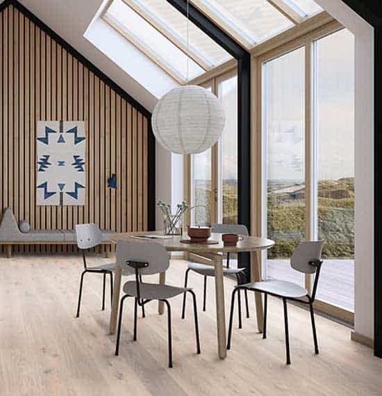 Boen Plank Oak Pale White Vivo Live Pure Lacquer 138mm flooring are made with a Boen X-Press click system, enabling easier and faster installation. Each plank has bevels on the long sides. The grey oak engineered flooring comes in fixed lengths which are 2200mm long, 138mm wide, has a 3.5mm wear layer and a total thickness of 14mm. May contain 2 boards half length, minimum length 600mm. Also available in 13.2mm thickness, 2.7mm wear layer, 2200mm lengths, may contain 2 boards half length, minimum length 600mm. The oak flooring is a (Vivo) Rustic Grade, this means you get a floor with a more rustic character, so each board will contain variations in colour and characteristics. Boen Live Pure looks like untreated wood flooring, but is a durable as a lacquered wood floor. Live Pure preserves the naturalness of the flooring, yet is highly resistant to wear and tear. Boen Live Pure protects the floor from dust, dirt, liqueds and chemical agents. Whilst at the same time appearing, looking and feeling like untreated or sanded raw wood. It also has a higher UV stability than standard lacquers and oils. PLEASE ALLOW 2 -3 WEEKS FOR DELIVERY!