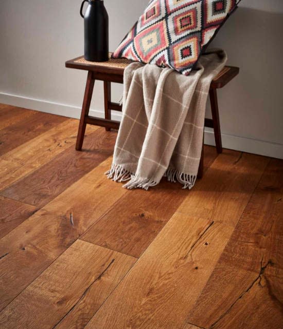 Atkinson & Kirby Contemporary Pinzon Heavy Brushed Engineered Oak Flooring 18mm x 190mm Planks are made with a Tongue & Groove profile. Knots, splits and a lively grain combine with a timeless rich colour to make Pinzon Oak a beautiful update on the classic rustic oak floor. The uneven surface and brushed grain highlight the natural characteristics and give this floor wide appeal to any interior. The flooring has been heavy brushed to really bring out the grain and finished with UV Oil. The oak flooring is a Rustic Grade. Filled large spilts are allowed, dark filler is used to fill any holes in the knots. Colour difference between boards are allowed. All grain patterns allowed. Rustic grade has the potential to include all characteristics across the majority of boards with knots appearing in varying sizes as well as many levels of natural colour variation in the timber to be expected. A varying amount of sapwood is possible, checks that are likely to be present will be filled in a colour to complement the natural look of the timber. The oak flooring comes in fixed lengths which are 1900mm long, each pack may contain one board that is half lengths. It has a 3mm wear layer and a total thickness of 18mm.