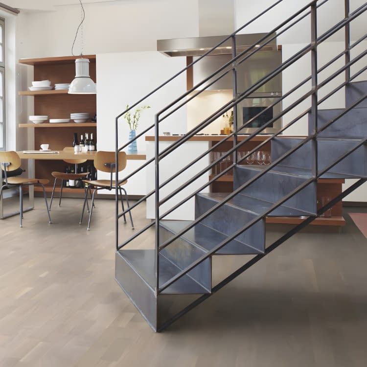 Boen 3 Strip Concerto Oak White Pigmented Brushed Live Pure Lacquer are made with a Boen X-Press click system, enabling easier and faster installation. Each 3 strip plank is square edged so has no bevels. The oak engineered flooring comes in fixed lengths which are 2200mm long, has a 3.5mm wear layer and a total thickness of 14mm. Brushed to raise the grain and finished with Live Pure Lcaquer which gives it an ufinished raw look. UK Stocked Delivery Within 5 Working Days.
