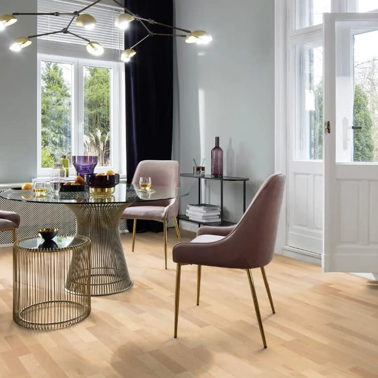 Boen Andante 3 Strip Canadian Maple Live Matt Lacquered are made with a Boen X-Press click system, enabling easier and faster installation. Each 3 strip plank is square edged so has no bevels. The maple engineered flooring comes in fixed lengths which are 2200mm long, has a 3.5mm wear layer and a total thickness of 14mm. Not Suitable For Any Underfloor Heating! PLEASE ALLOW 2 -3 WEEKS FOR DELIVERY!