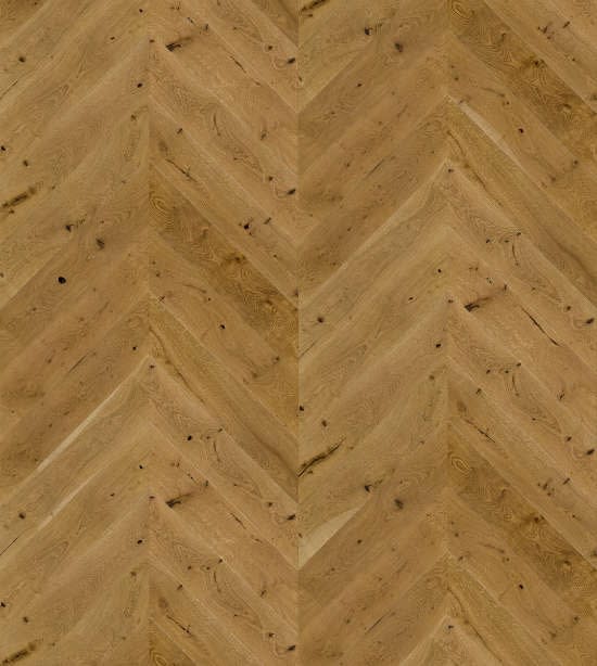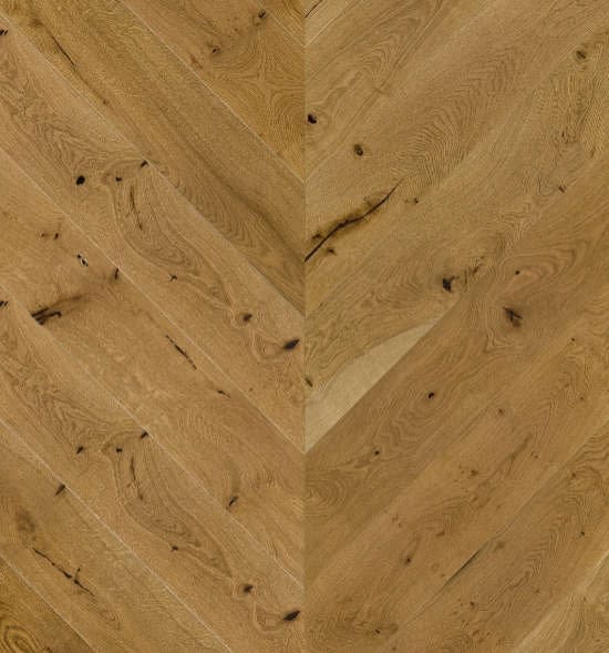 Timba Floor Golden Brown Chevron Engineered Oak Flooring T&G Matt Lacquered are made with a Tongue & Groove profile. The flooring has been stained to a golden brown colour, brushed to slightly raise the grain and coated with matt lacquer. The engineered chevron oak flooring is a Rustic Grade, this means you get a floor with a more rustic character, so each board will contain variations in colour and characteristics. Dark brown filler is used to fill any cracks ( maximum 8mm wide by 600mm long ) and dead knots ( max size 40mm ). The boards are 130mm wide. The length of the boards are 725mm long. Each pack contains 4 left hand and 4 righted boards. Weight of each pack is 5kg. It has a 2.5mm wear layer and a total thickness of 14mm. The flooring must be glued directly to the sub-floor. Suitable for Water-Fed Underfloor Heating. Top layer is European Oak. We recommend installation by a professional floor fitter. Engineered Chevron Fitting Instructions Recommended Cleaner is Bona Cleaner SEE LINK Use Bona Freshen Up for periodic cleaning SEE LINK Use of care agents for lacquered floors made by manufacturers other than Bona may result in staining, discolouration of floors or major changes to their slipperiness and sheen.
