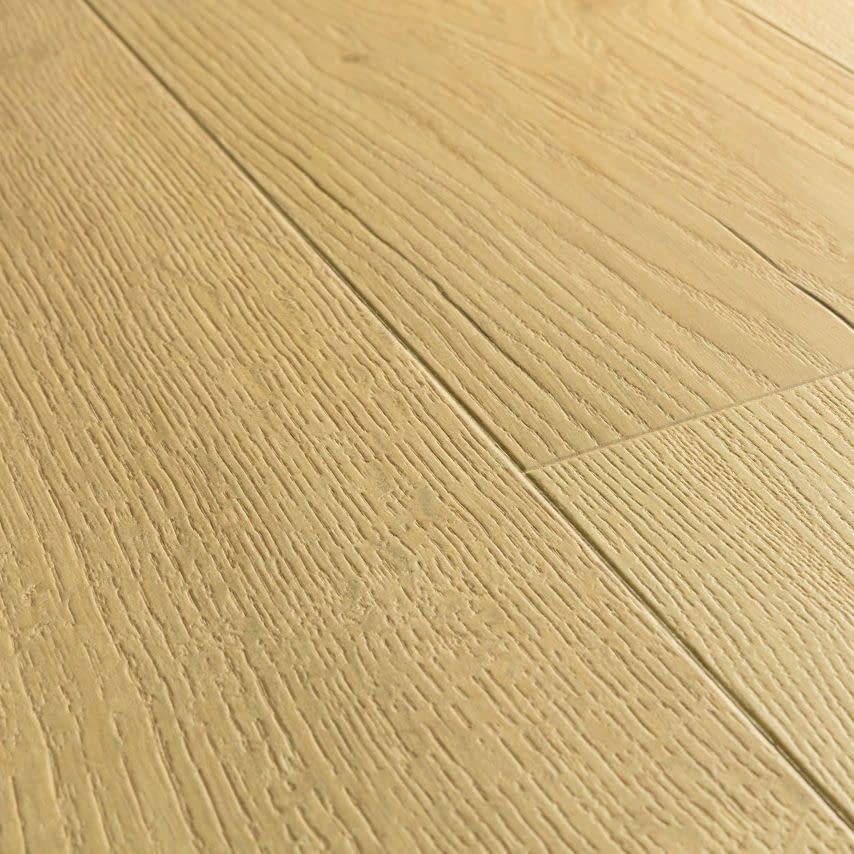 Quick-Step Impressive Ultra Almond Oak (IMU8255) is a premium 12mm laminate floor that offers a versatile, mid-toned oak finish with a warm and natural appeal. The almond hue sits perfectly between light and dark wood tones, making it an adaptable choice for any interior style. This Ultra version provides a significant upgrade in durability and feel; the thicker 12mm core creates a much more solid sound underfoot and offers superior structural stability compared to standard 8mm boards. Each board is 138cm long and 19cm wide. Also it is suitable for underfloor heating.