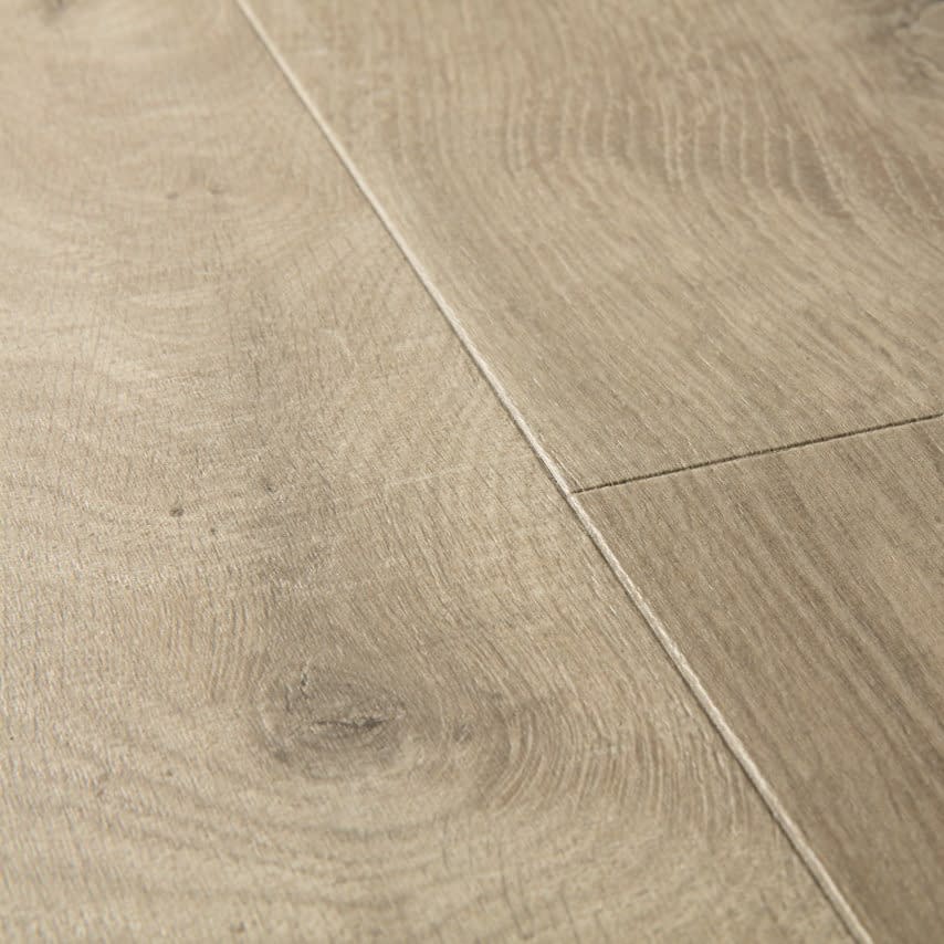 Quick-Step Impressive Ultra Soft Oak Light Brown (IMU3557) is a premium 12mm laminate floor that perfectly blends contemporary light oak tones with heavy-duty resilience. The soft, muted brown palette and delicate grain patterns create a sense of calm and space, making it an excellent choice for modern interiors. As part of the Ultra range, this floor features an increased 12mm thickness, providing superior sound absorption and a remarkably solid feel underfoot, elevating the acoustic performance and stability beyond that of standard laminate boards. Each board is 138cm long and 19cm wide. Also it is suitable for underfloor heating.