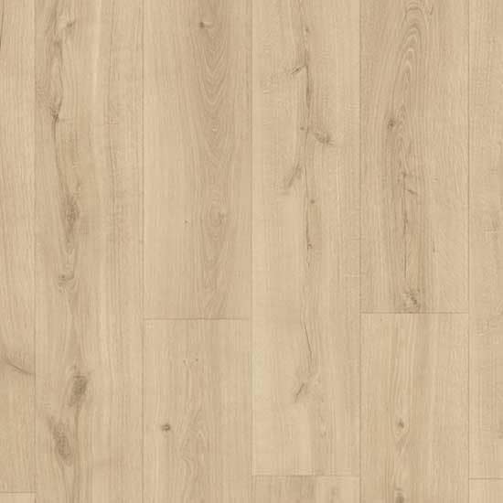 Quick-Step Majestic Desert Oak Light Natural Laminate Flooring MJ3550 is extremely water resistant. Treated with a unique Hydroseal water-repellent coating, Majestic floors offer the ultimate in water resistance, making them the perfect fit for kitchens and bathrooms. It is 9.5mm thick and comes with a 25 year residential warranty, making it ideally suited to heavy foot traffic areas. Each Quick-Step Majestic Plank has a bevel around each board. The width is an extra wide 240mm and the length is 2050mm.