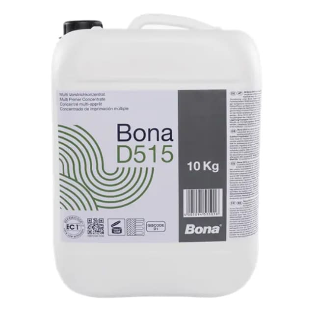 Bona D515 Primer is a multi-purpose primer concentrate for preparation of absorbent and non-absorbent substrates. Excellent prior to application of a Bona levelling compound or a Bona dispersion-based adhesive. Due to high bonding strength, Bona D515 can be applied undiluted over dense, non-absorbent surfaces and wood substrates as well as old, well bonded floor coverings (tiles, PVC, etc.) in sound condition.