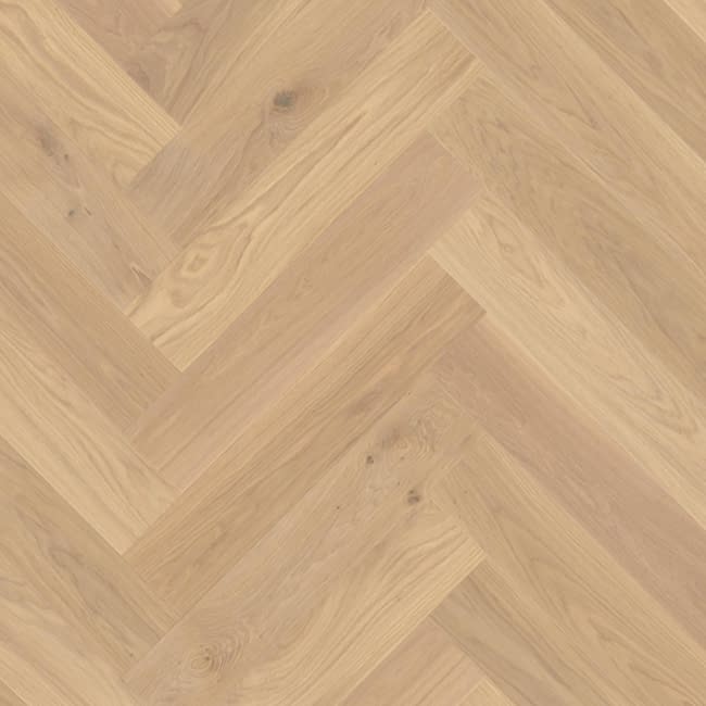 Boen Herringbone Click Adagio Oak White Engineered Flooring Oiled have a 5G click joint this enables quick installation and also prevents gaps forming between the boards. The herringbone oak flooring has been finished with natural oil. The click herringbone parquet flooring comes with half left hand and half right hand strips. The Herringbone flooring is a clean looking grade with small knots. Colour difference between boards are allowed. All grain patterns allowed. The oak engineered flooring comes in fixed lengths which are 690mm long and the widths are 138mm. The thickness is 14mm which incorporates a 3.5mm wear layer. Each pack contains 0.95m2 of A boards and 0.95m2 of B Boards. Suitable for underfloor heating. Please note that the herringbone click is not suitable to be used with other 5G click products. 25 Year Domestic Warranty. 4 Bevel. BOEN Herringbone Click is the solution that satisfies the need for both the DIY and the professional market. This is a Herringbone floor that can easily be installed by the end-consumer and professionals and are offered a choice between glued-down or floating installation.