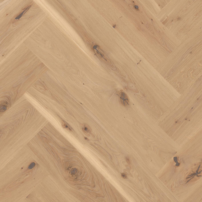 Boen Herringbone Click Castle Vivo Oak Engineered Flooring Brushed Live Pure Lacquer have a 5G click joint this enables quick installation and also prevents gaps forming between the boards. This is a ultra wide herringbone flooring at 209mm width. The herringbone oak flooring has been brushed to raise the grain and finished with live pure lacquer, which looks like untreated wood flooring, but is a durable as a lacquered wood floor. Live Pure preserves the naturalness of the flooring, yet is highly resistant to wear and tear. Boen Live Pure protects the floor from dust, dirt, liqueds and chemical agents. Whilst at the same time appearing, looking and feeling like untreated or sanded raw wood. It also has a higher UV stability than standard lacquers and oils. The click herringbone parquet flooring comes with half left hand and half right hand strips. The Herringbone flooring is a Vivo Grade so is a rustic grade. Colour difference between boards are allowed. All grain patterns allowed. See grading explanation PDF below for details. The oak engineered flooring comes in fixed lengths which are 1045mm long and the widths are 209mm. The thickness is 14mm which incorporates a 3.5mm wear layer. Each pack contains 1.31m2 of A boards and 1.31m2 of B Boards. Suitable for underfloor heating. Please note that the herringbone click is not suitable to be used with other 5G click products. 25 Year Domestic Warranty. 4 Bevel. vivo-grading-explanation-2025_en