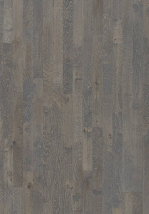 Junckers 2-Strip Beech Twilight Grey Flooring is available in two thicknesses which are 14mm and 22mm thick, both are 129mm wide. A grey stained has been applied then finished in Ultra Matt Lacquer. The grade is Harmony – This grade has a natural look with more colour and structural graining variation between the individual staves. Medium sized knots and fine hairline splits occur to some degree. One board per pack may be two half boards.